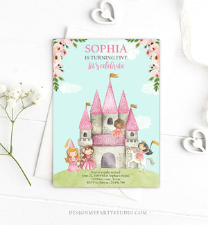 • Editable Princess Birthday invitation Once Upon a Time Princess Party Pink Girl Gold Floral Castle Download Printable Template Corjl 0171