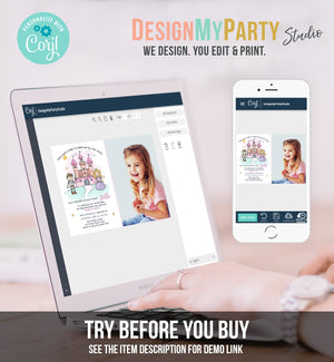• Editable Princess Birthday Invitation Girl Fairytale Birthday Party Once Upon a Time Royal Download Printable Template Digital Corjl 0385