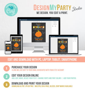 You can edit, add and remove text, font colors, move and resize the text boxes ("No trick....Just a Treat!" is NOT editable).