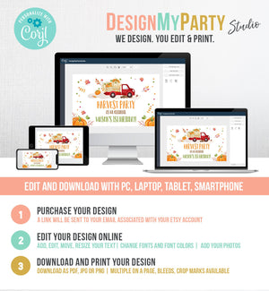 • Editable Pumpkin Truck Birthday Backdrop Banner Harvest Party Welcome Sign Fall Pumpkins Red Orange Download Corjl Template Printable 0153