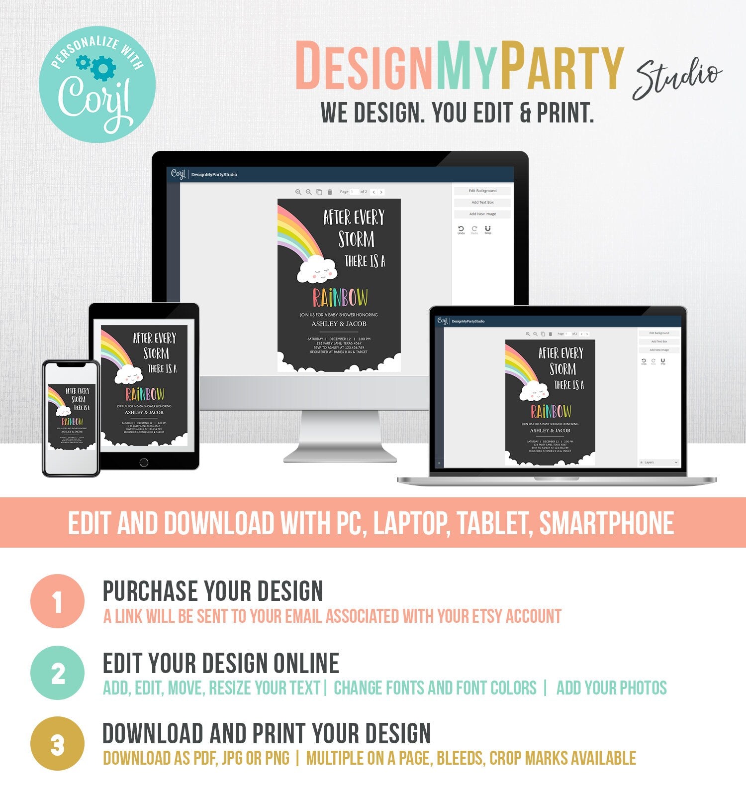 You will receive a link to edit your digital design, no printed items will be shipped!