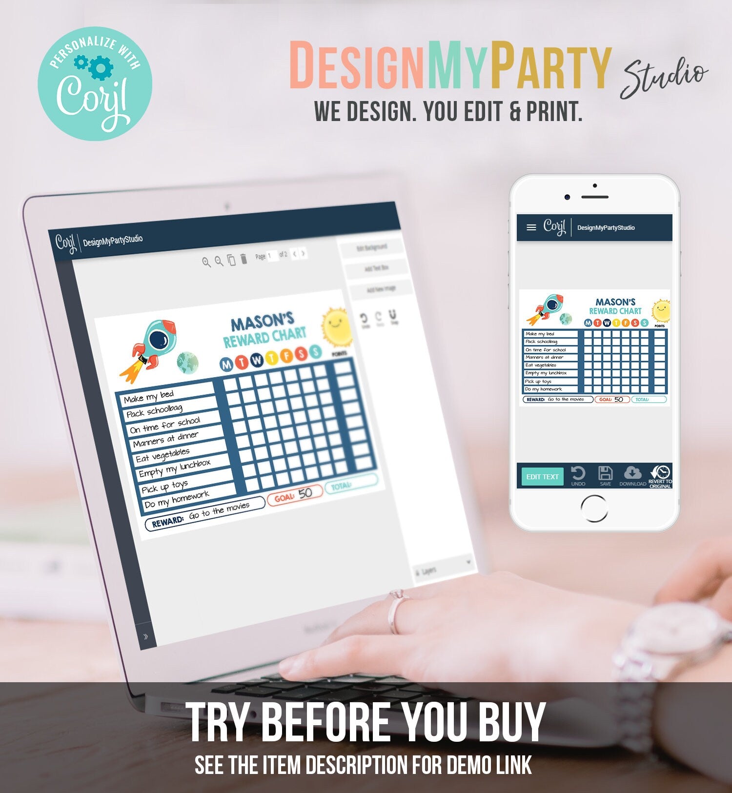 • Editable Reward Chart for Boys Printable Space Chore Chart for Kids Chores Rocket Routine Chart Chore Chart Digital Template Printable 0046
