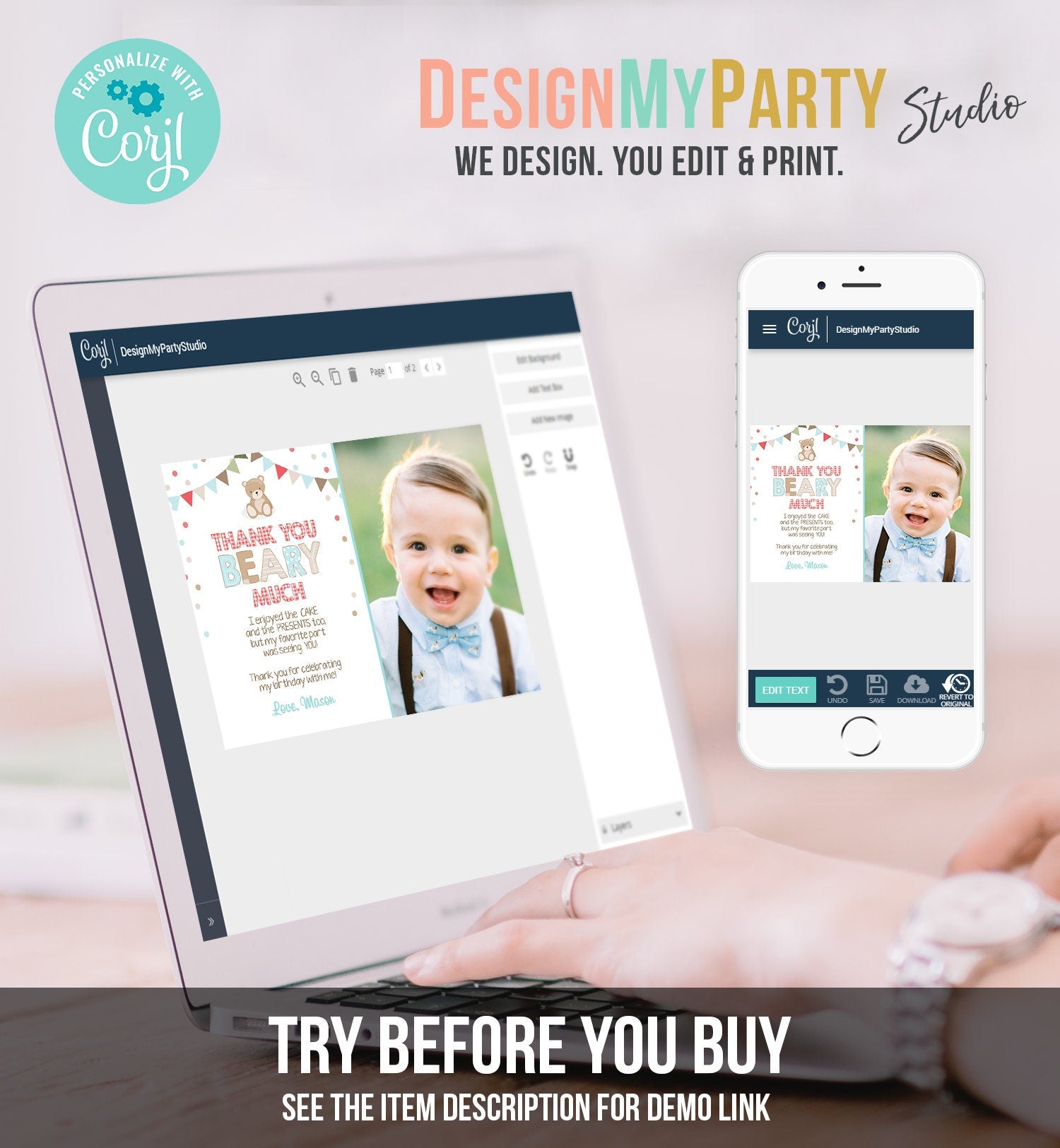You can edit fonts, font colors, move and resize the text boxes ("Thank You Beary Much" is NOT editable).