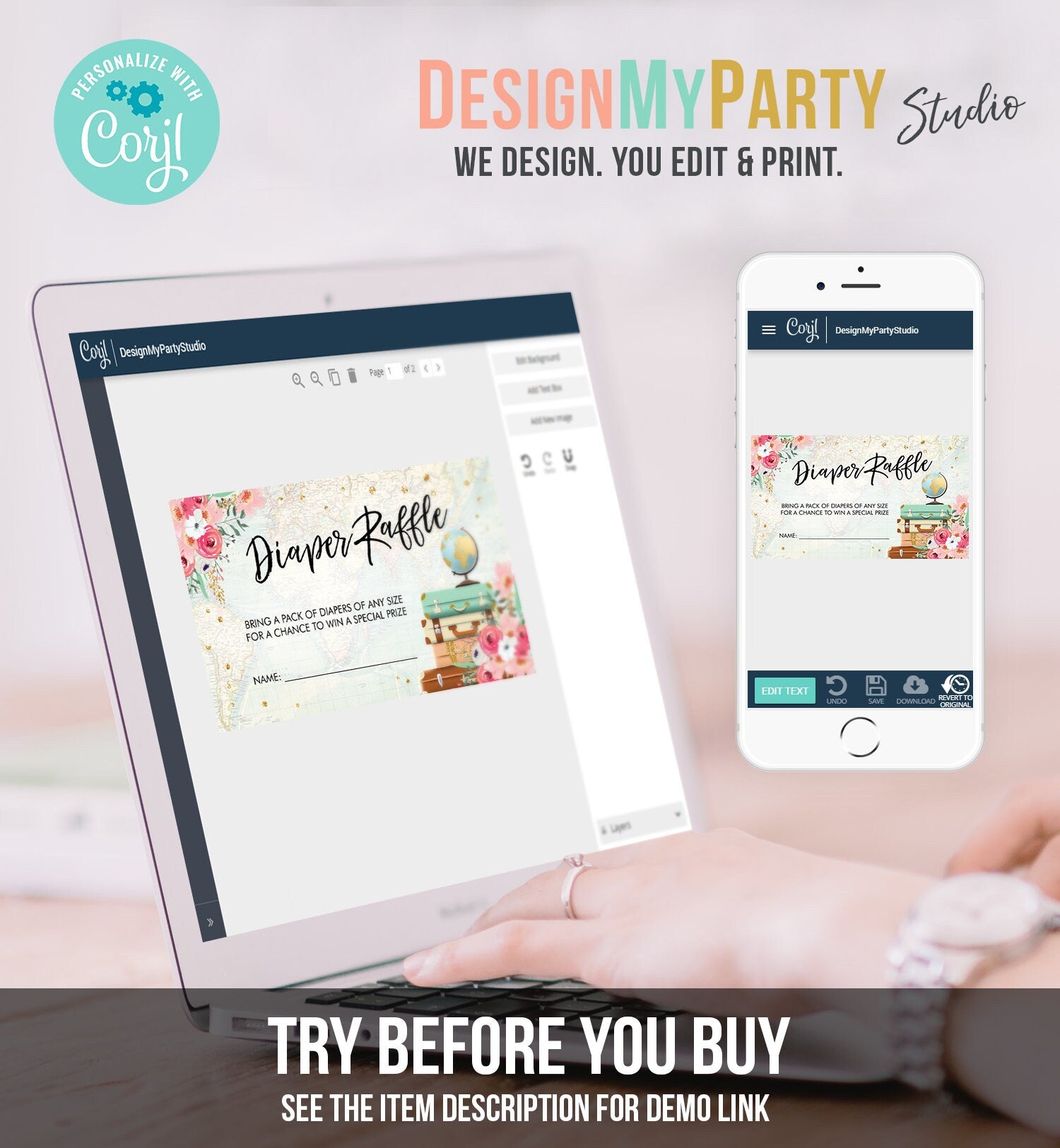 Materials: Instant Download, Digital Download, Editable Template, Template, Printable, JPG, JPEG, PDF, PNG, Printable Diaper Raffle, Editable Diaper, Corjl.