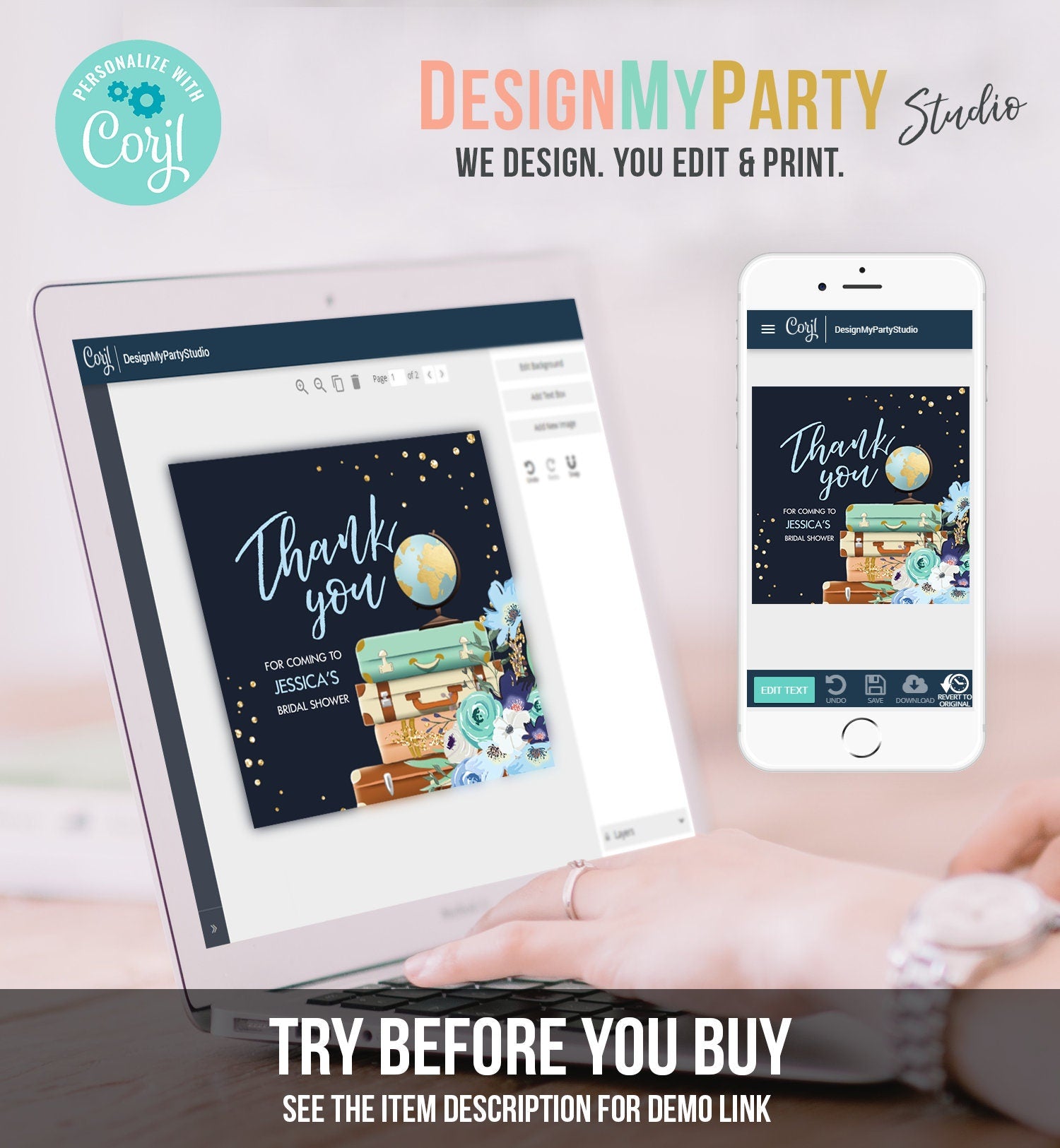 Once payment is confirmed, you will get an email containing the link for you to access your editable design.