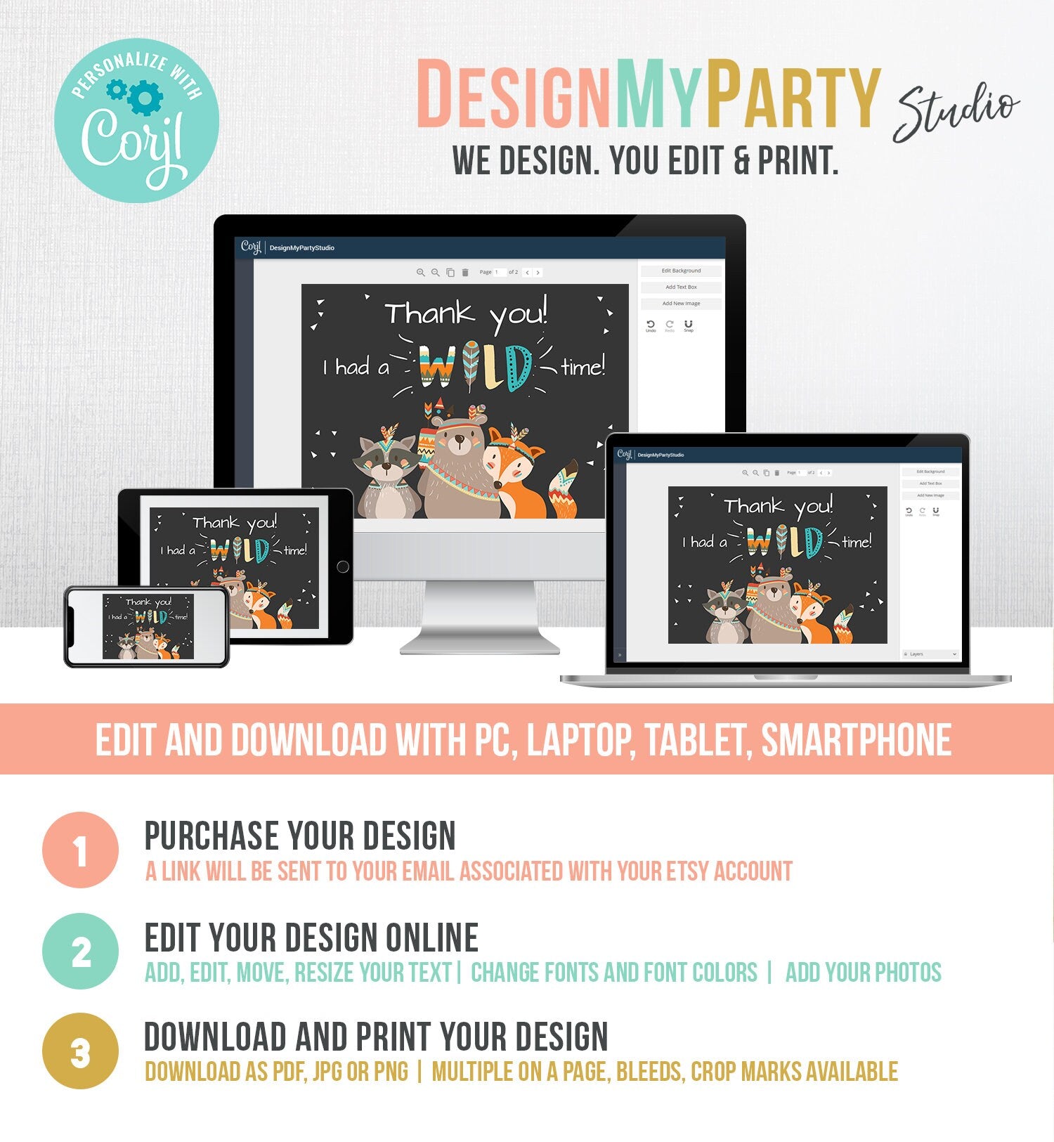 You will receive a link to edit your digital design, no printed items will be shipped!