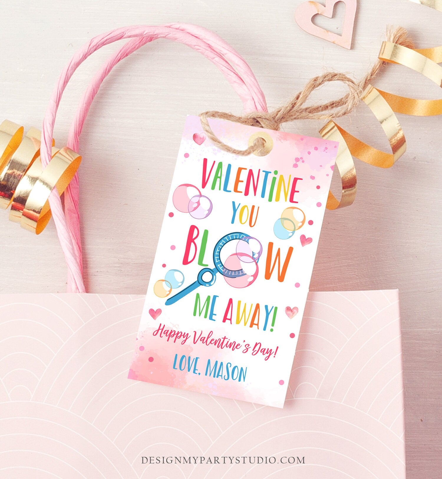 • Editable Valentine You Blow Me Away Favor Tag Thank You Blowing Bubbles Soap Valentine's Day Tag School Digital Template Printable 0370
