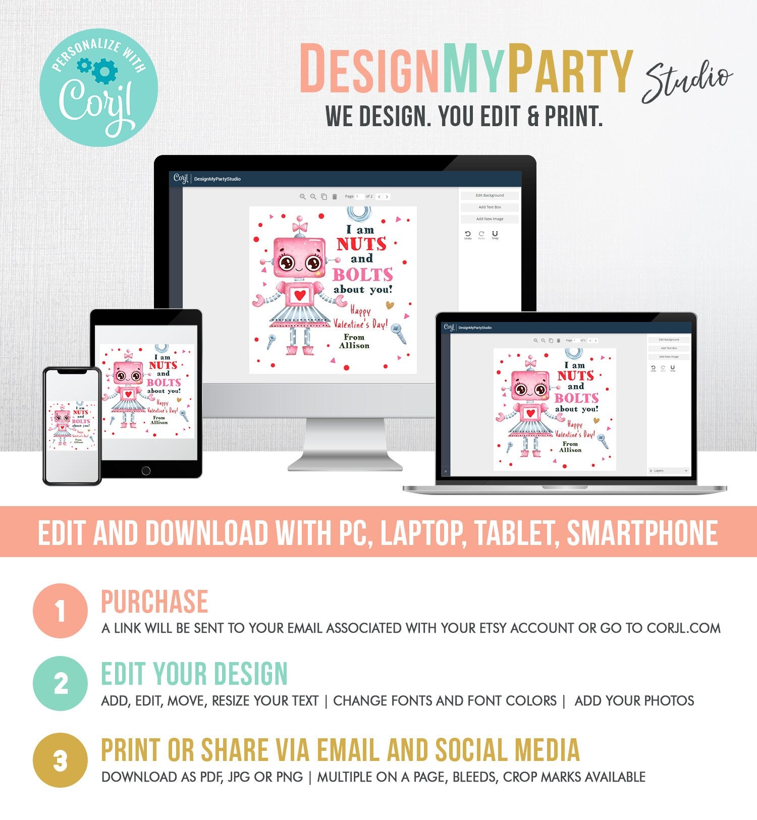 1. PURCHASE AND RECEIVE THE LINK TO ACCESS YOUR DESIGN.