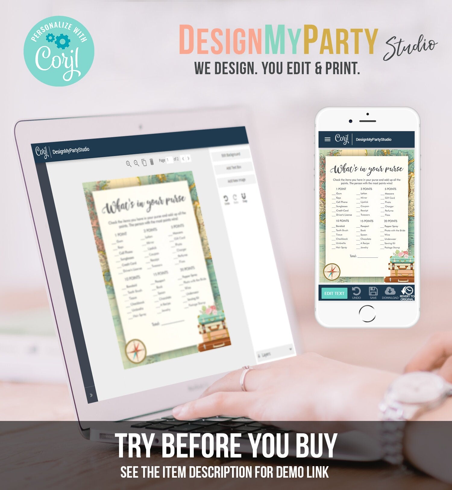 You can edit, add and remove text, font colors, move and resize the text boxes ("What's in Your Purse" is NOT editable).