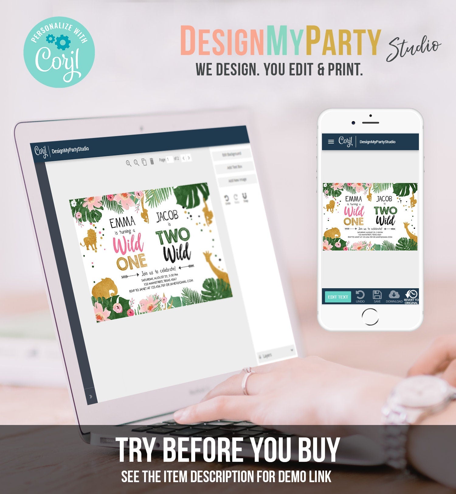 You can edit, add and remove text, font colors, move and resize the text boxes ("Wild One" and "Two Wild" are NOT editable).