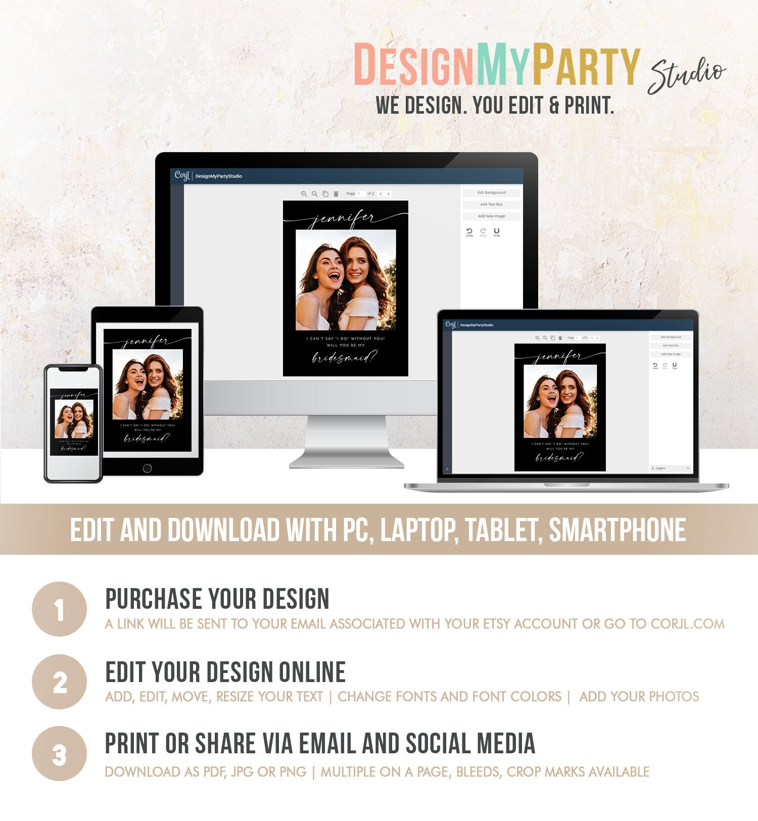 ★ A perfect way to ask your bridesmaid for your wedding and to save money by editing and printing the files yourself! Or send them as a digital card by emailing or texting your bridesmaid! ★