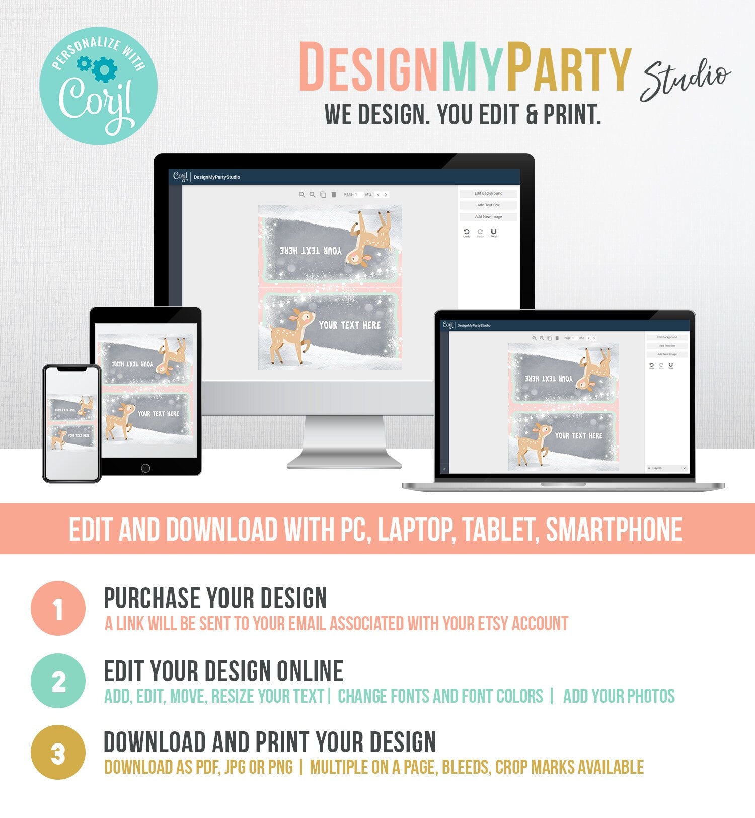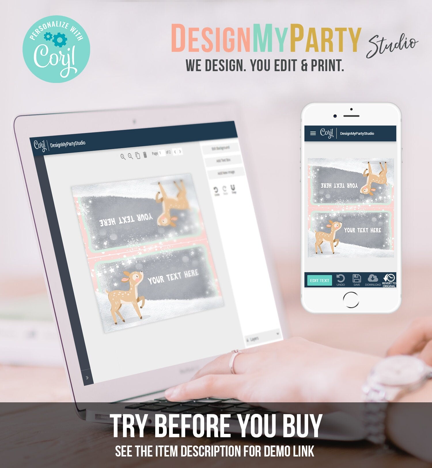 • Editable Winter Food Tent Cards Food Labels Girl Birthday Winter Onederland Decorations Pink Deer Food Labels Printable Template Corjl 0109