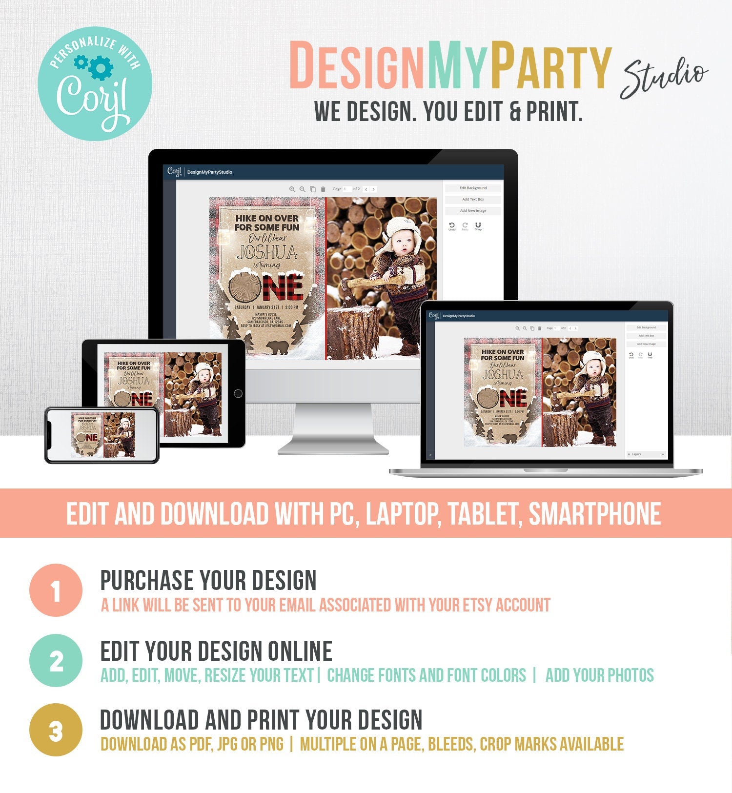 You will receive a link to edit your digital design, no printed items will be shipped!