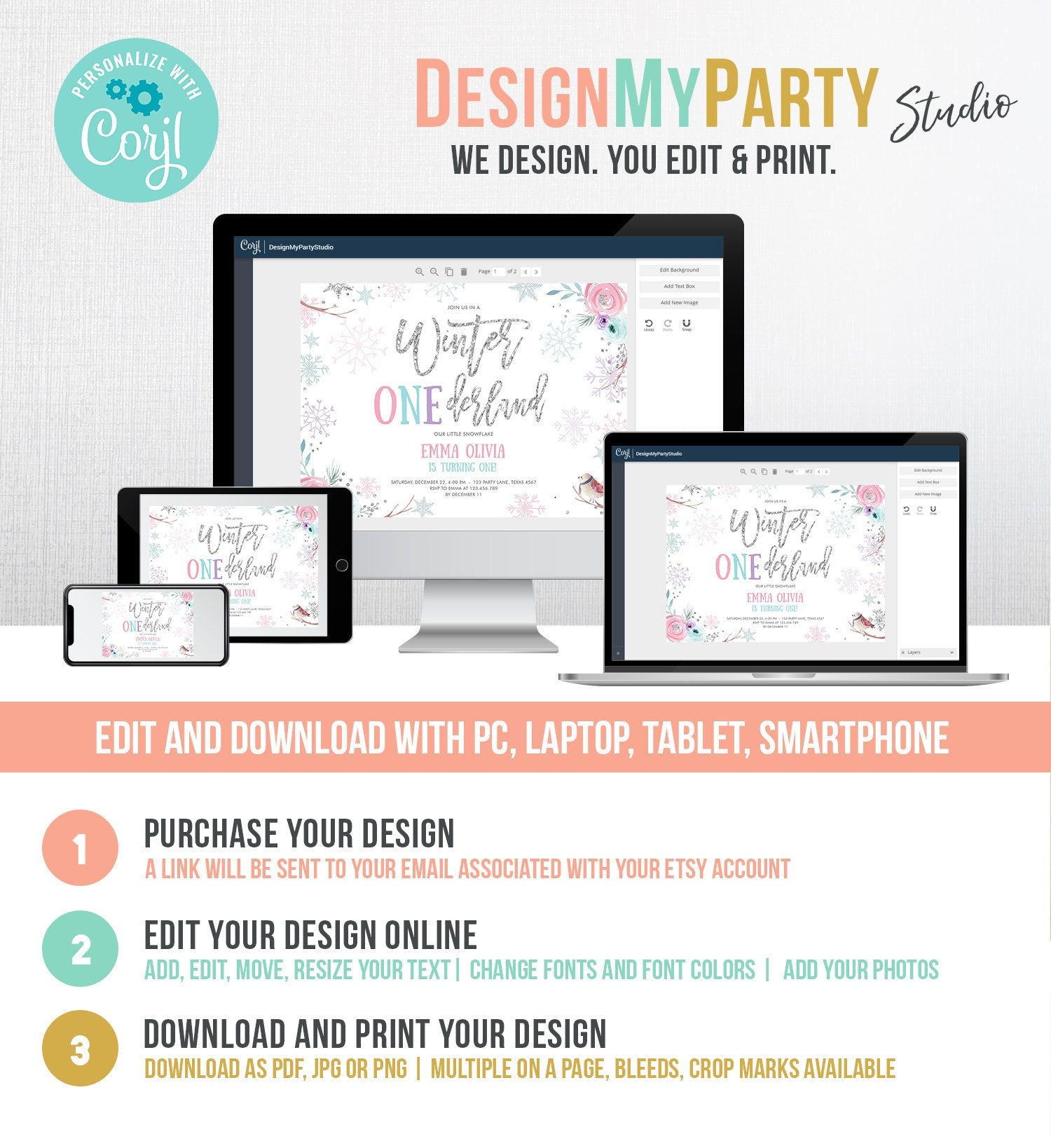 You can edit, add and remove text, font colors, move and resize the text boxes ("Winter Onederland" is NOT editable).