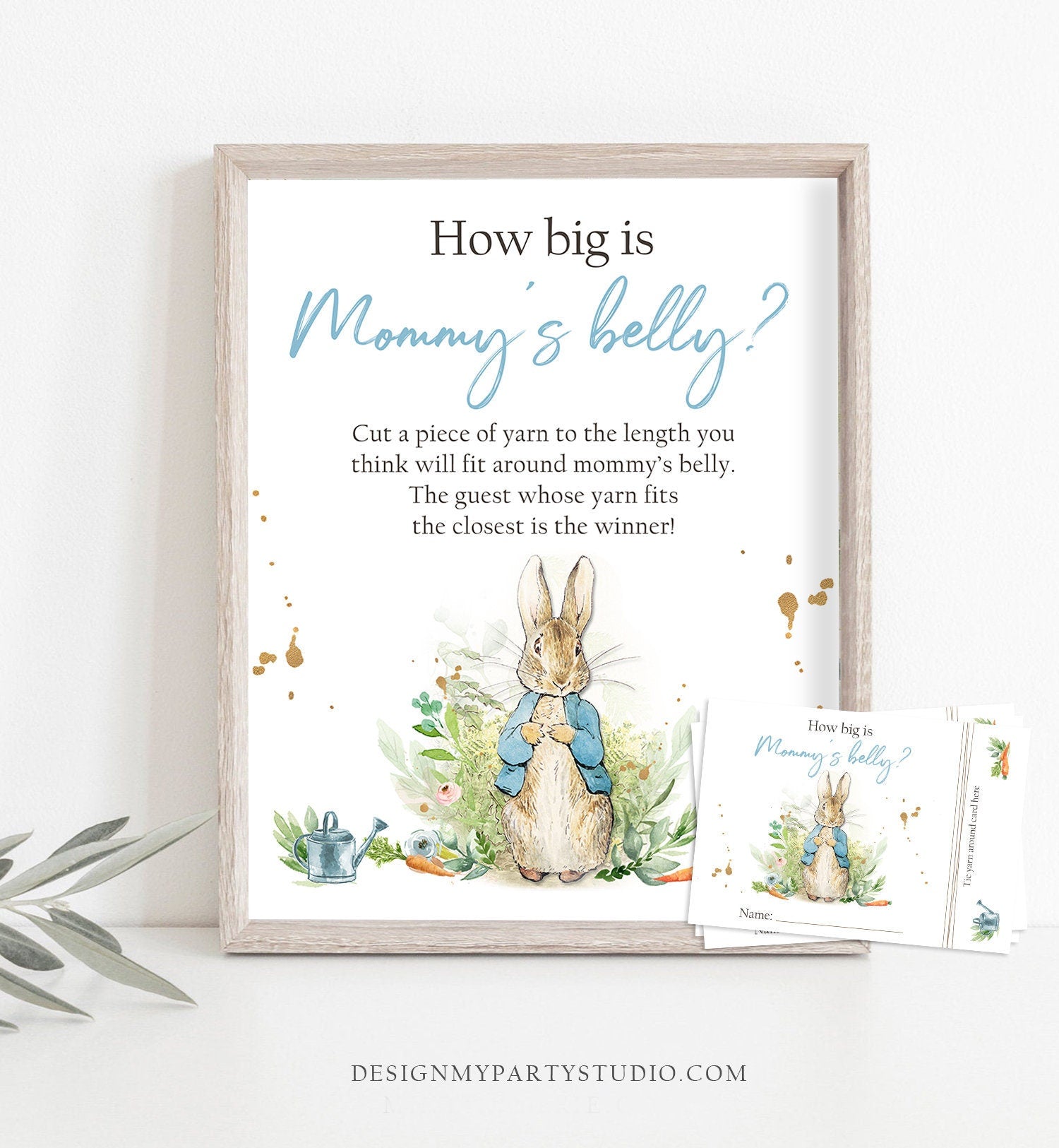 • How Big is Mommy's Belly Game Baby Shower Peter Rabbit Bunny Boy Rustic Greenery Yarn Length Belly Instant Download Printable 0351