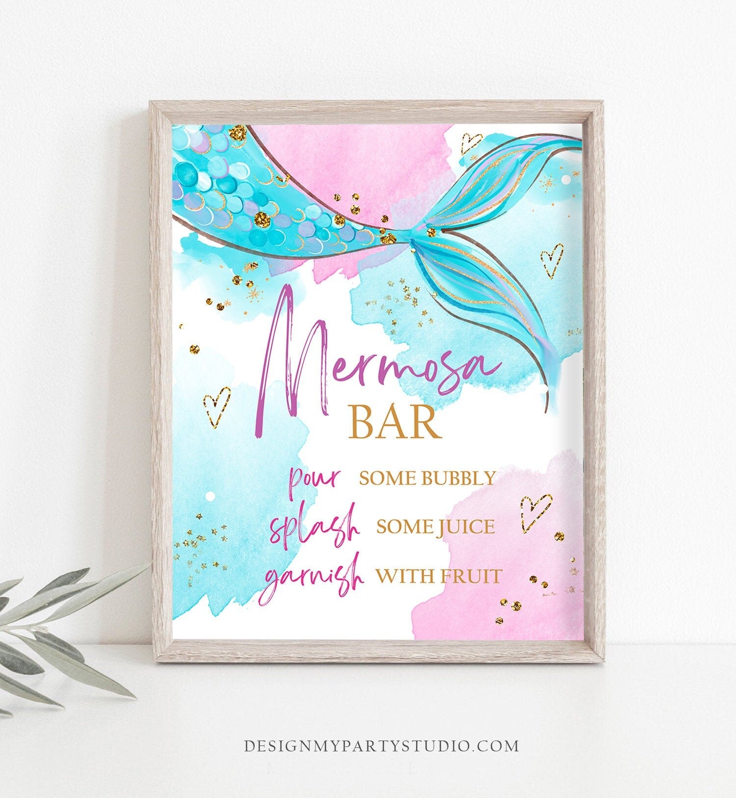 • Mermosa Bar Sign Mimosa Bar Sign Mermaid Birthday Sign Table Decor Blue Pink Party Under The Sea Baby Shower Instant Download Printable 0403